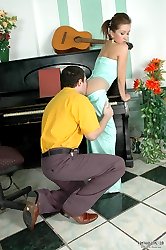 Hot chick in control top tights enjoying muff-diving before jumping on cock