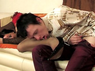 Sleepy chick in control top tights fed with manmeat and impaled on a boner